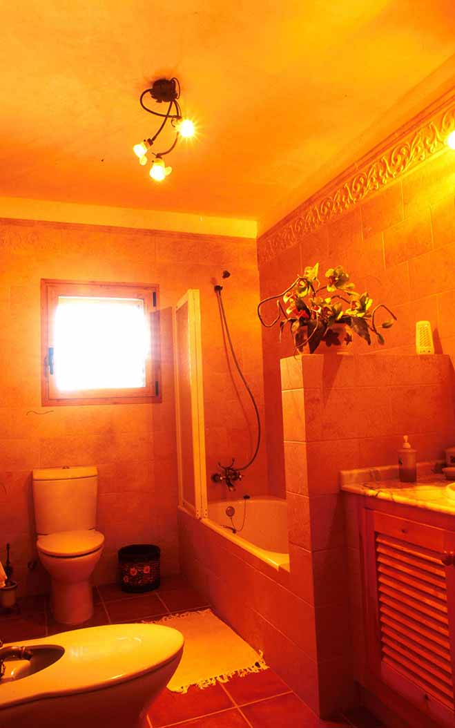 THREE BEDROOM Villa with swimming-pool and purpose built barbecue area with dining facilities located in enclosed grounds behind electric operated front gate in the rural countryside on the road to Valle de Morna between Santa Eulària and San Carlos. Three (two double, one en-suite and twin) bedrooms to sleep maximum six people, two bathrooms, lounge/dining room with air-conditioning/heating, multilingual satellite television, CD/Radio digital music surround system and modem internet Wi-Fi connection. Kitchen with gas cooker/oven, electric grill, fridge/freezer, microwave, coffee maker, double sink unit, dishwasher and dining facilities. Utility laundry room with washing machine and dryer. Oil underfloor central heating throughout. Kitchen utensils, pans, crockery, cutlery and bedlinen is provided.