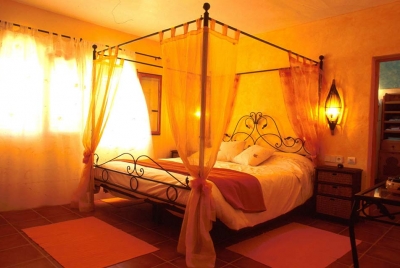 CASA LAIA Y ERIKA Secluded in enclosed grounds on the road to Valle de Morna, which is to be found in the rural Ibicencan countryside between Santa Eulària and San Carlos. At the main entrance of this country home is an electric operated front gate. The villa has Wi-Fi internet. an alarm system and a security safe and consists of three (two doubles and a twin) bedrooms, there is a four-poster bed with en-suite bathroom in one of the double-bedrooms, the second double-bedroom also has a baby cot and there is a separate bathroom to be shared between two bedrooms. The lounge and dining area is air-conditioned and has multilingual satellite television and CD/Radio digital music stereo surround system throughout the villa. The kitchen/dining room has a gas cooker and oven, fridge/freezer, double sink unit, dishwasher, washing machine and microwave.